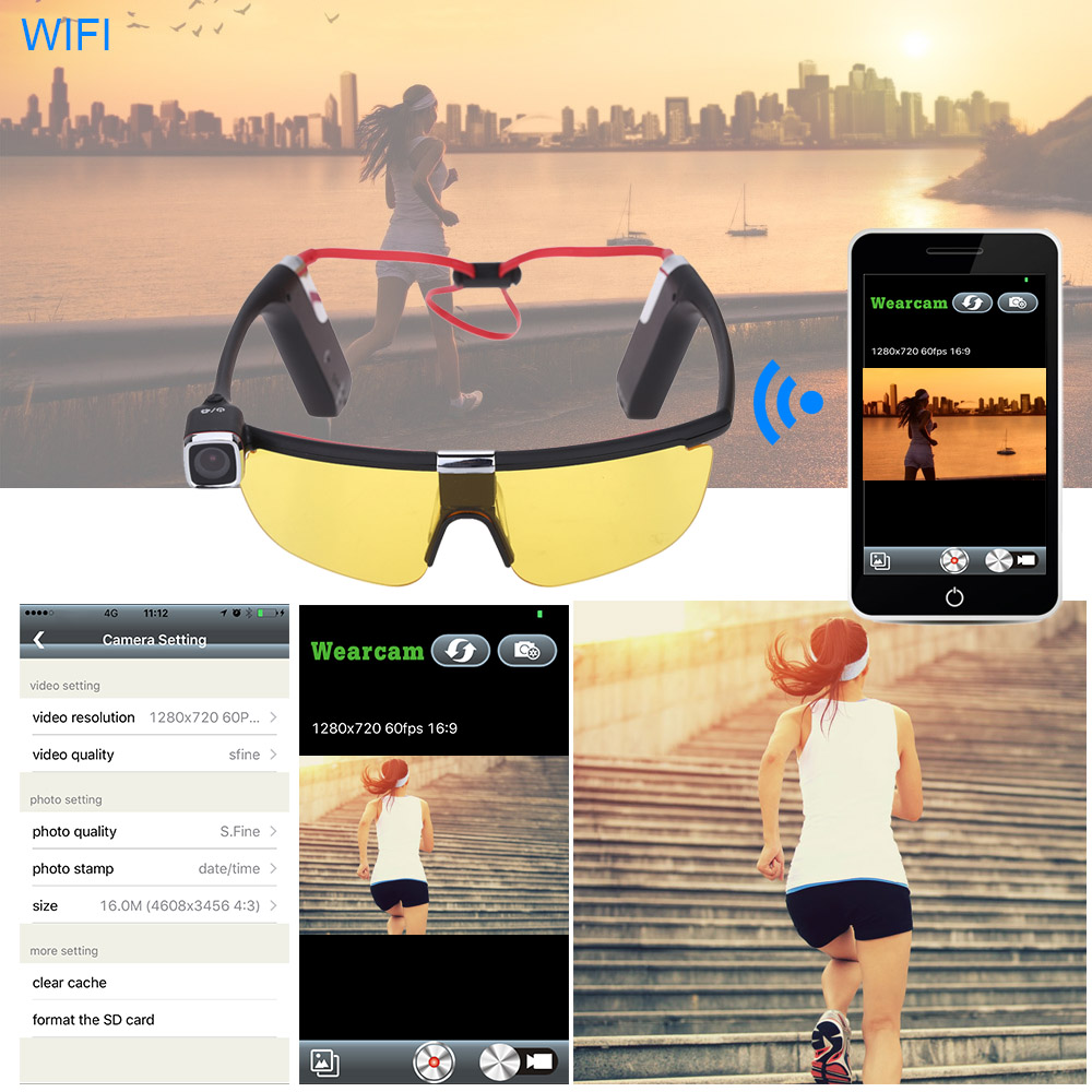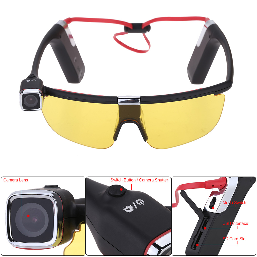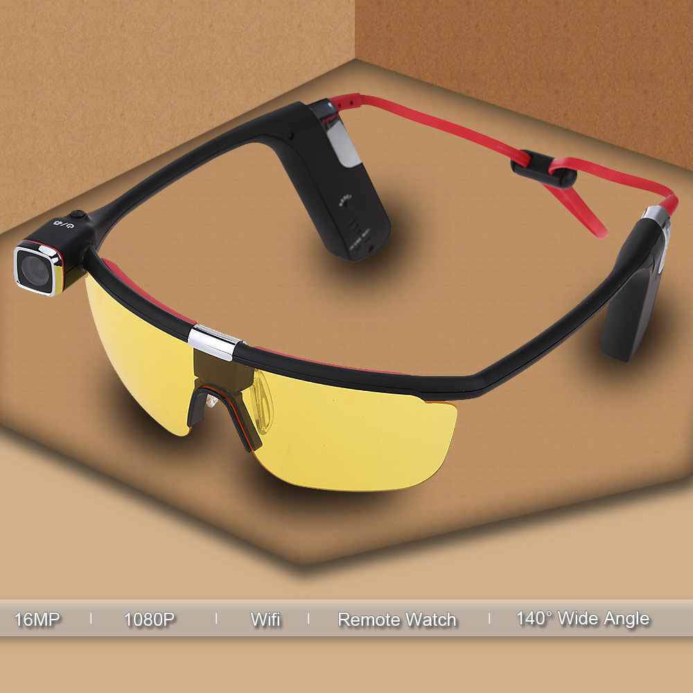 Andoer Sunglasses Handsfree Eyewear Wearing Action Sports Camera Camcorder Video Recorder DV DVR HD 1080P 30 FPS 140° Wide Angle Wifi Smartphone APP Remote Control with Mic for iPhone Samsung IOS Android
