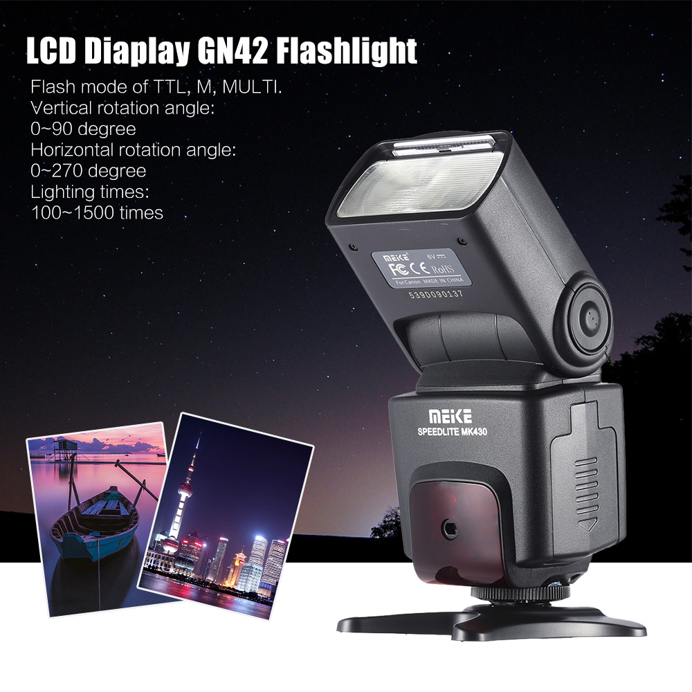 --TTL flash with large guide number: GN42; which reaches the level of the mainstream hot shoe flashes, support TTL/M/Multi mode.