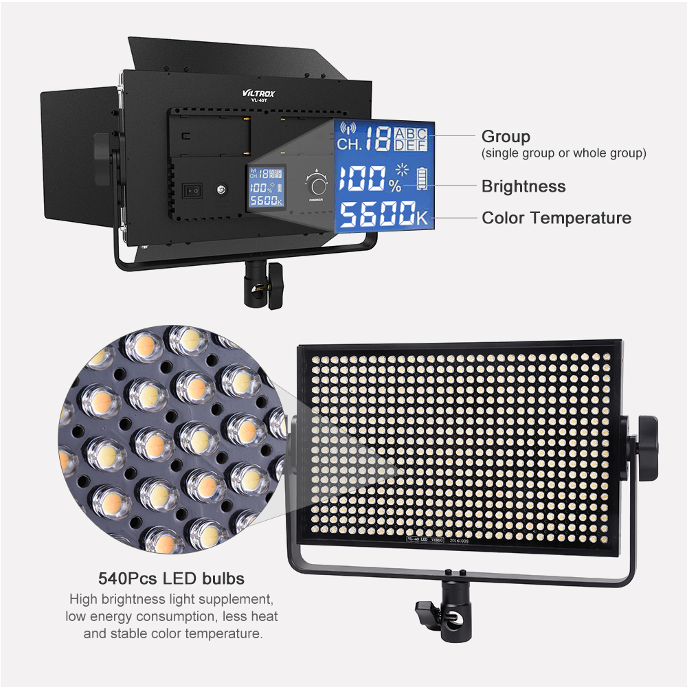 With the characteristics of high brightness light supplement, low energy consumption, less heat and stable color temperature, Viltrox VL-40T LED Video Light adopts high quality LED bulbs.